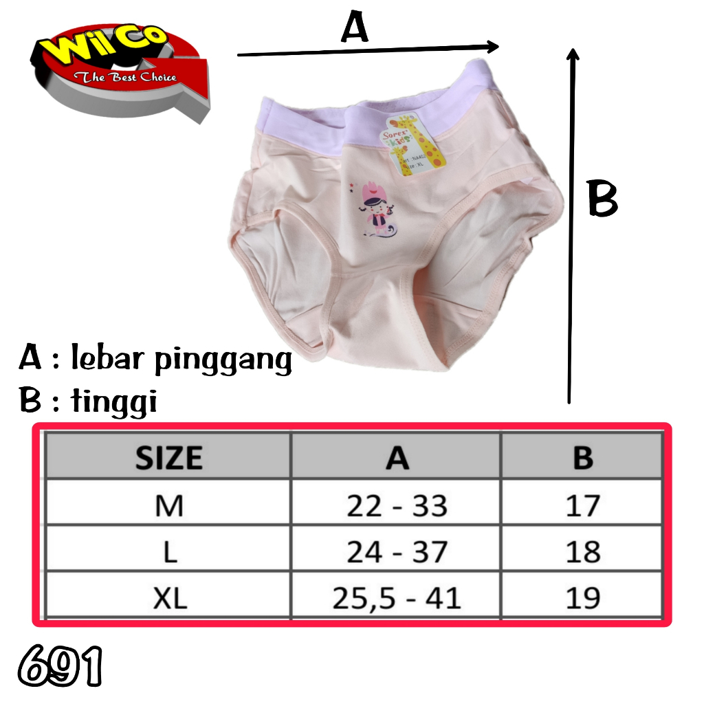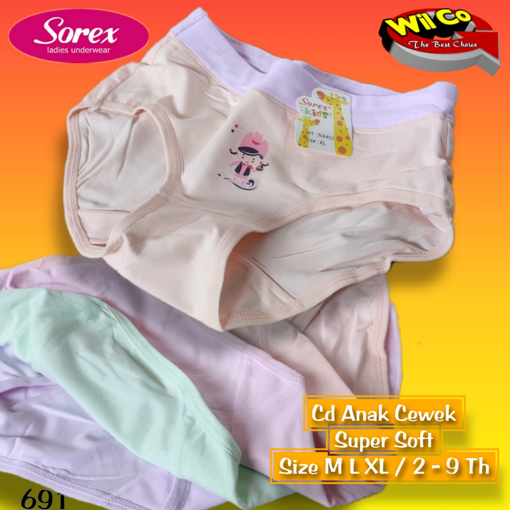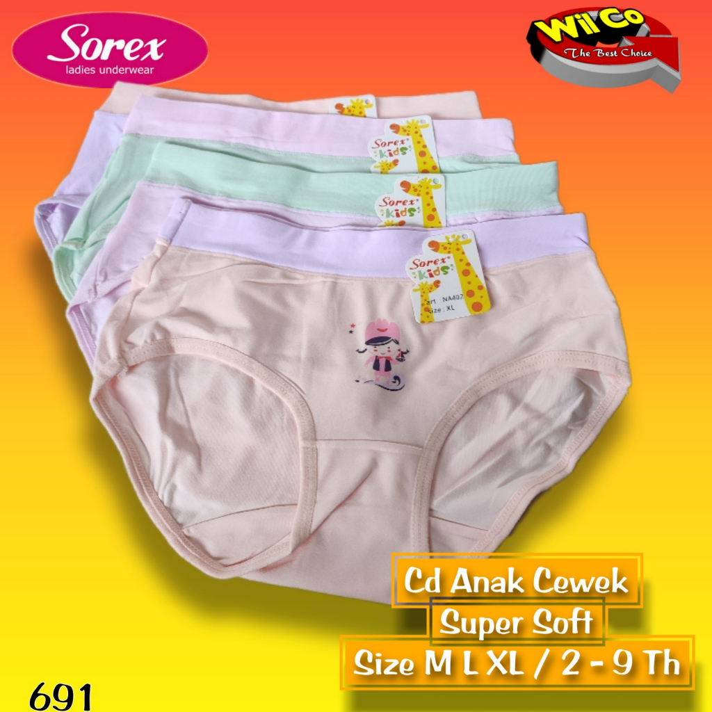 K691 (3-6 Pcs) Celana Dalam Anak Perempuan Sorex Usia 2th Sampai 9th Size M, L, XL