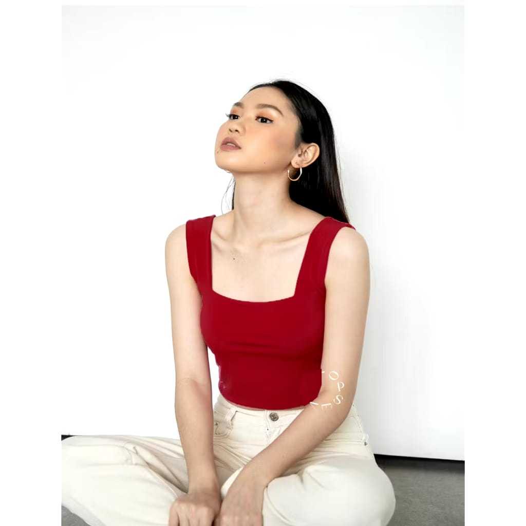 TANKT0P TANK T0P TANGT0P WANITA POLOS BASIC TALI BESAR SQUARE SPANDEK JERSEY / Tanktop