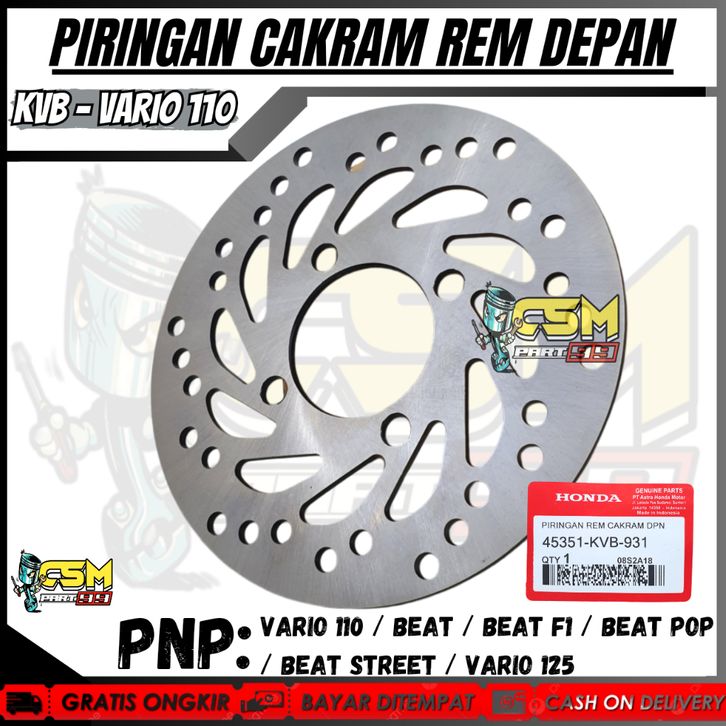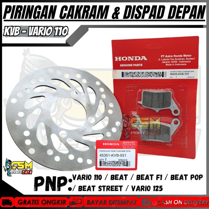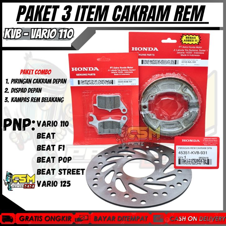 PAKET 3ITEM PIRINGAN CAKRAM DEPAN VARIO 11O + KAMPAS REM DEPAN + BELAKANG BEAT, BEAT F1, BEAT POP,