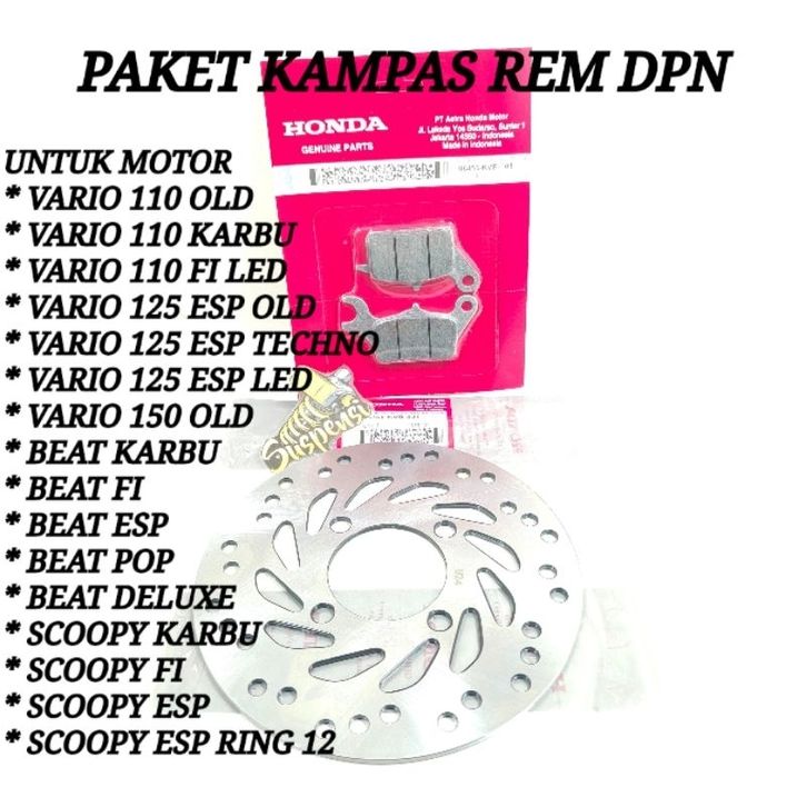PAKET PIRINGAN DISC PLUS KAMPAS REM DEPAN BEAT FI SCOOPY FI BEAT POP SPACY FI VARIO 125 FI KVB