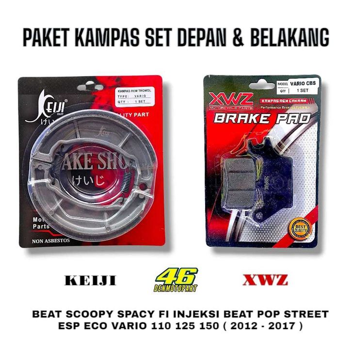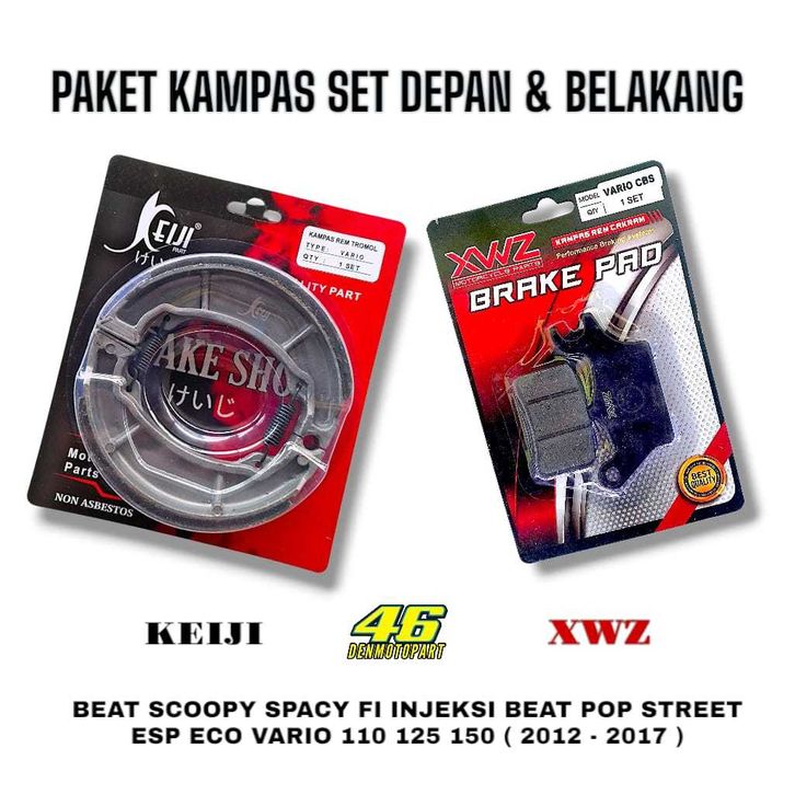 PAKET - 1 SET KAMPAS REM DEPAN BELAKANG [ KEIJI- XWZ ] HONDA - BEAT SCOOPY SPACY FI , VARIO 110 125