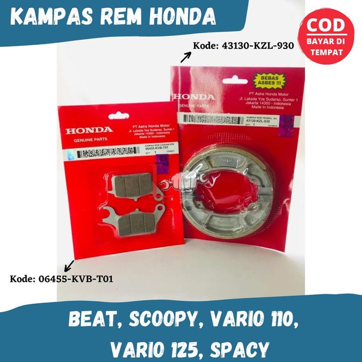 ORI PAKET KAMPAS REM DEPAN BELAKANG ASLI ORIGINAL PRESISI KODE(KZL-KVB) BEAT , SCOOPY , SPACY &