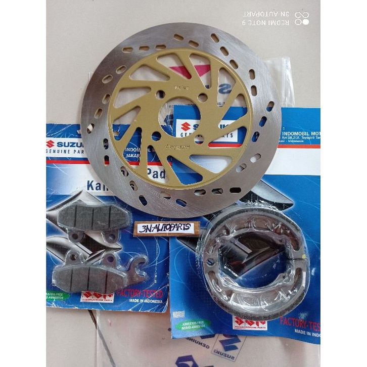 PAKET PIRINGAN CAKRAM DEPAN+KAMPAS REM DEPAN BELAKANG SUZUKI SMASH OLD SHOGUN 115 SHOGUN 125