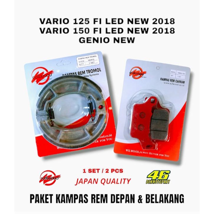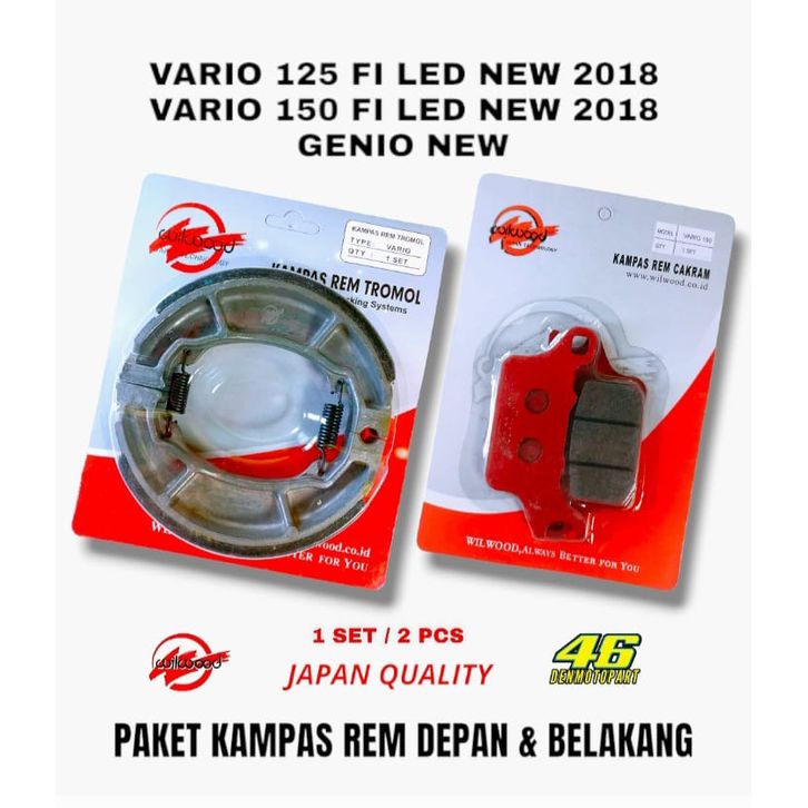 PAKET - 1 SET KAMPAS REM DEPAN BELAKANG HONDA VARIO 125 150 ESP NEW LED , GENIO [ WILWOOD ]