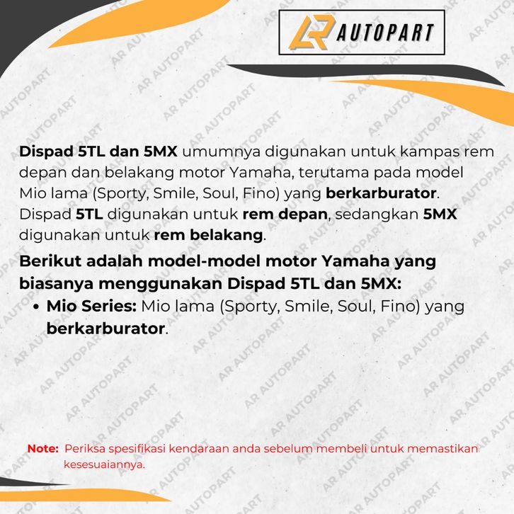 AR__ Paket Kampas Rem Depan Belakang Mio Lama Mio Sporty 5TL