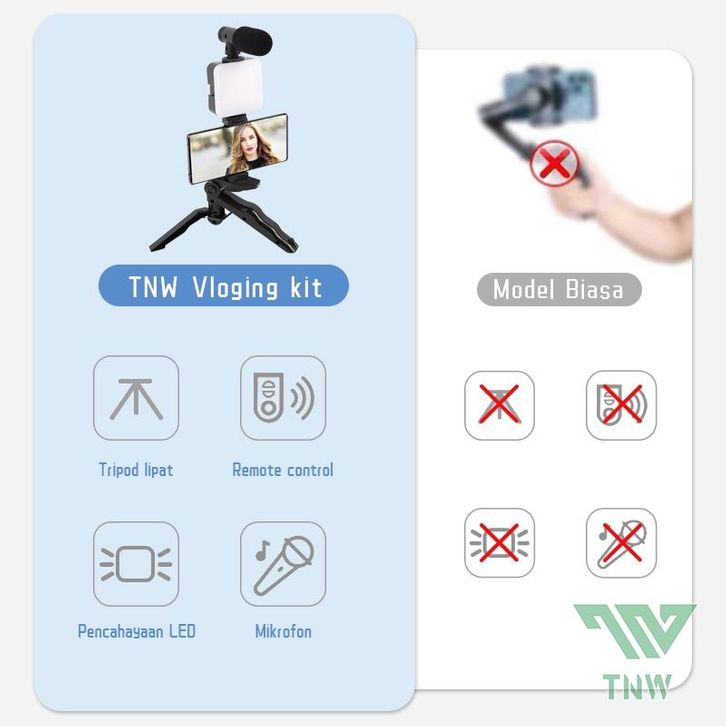 TNW Paket Vlog Vlogging Kit Youtuber Vlogging Set Pembuatan Video Livestream Tripod +Mikrofon+Lampu LED