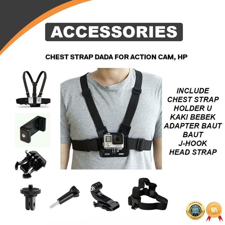 Chest Strap Tali Dada Handphone & Kamera Mount Body Belt Holder Clip