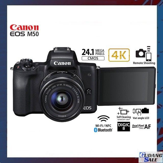 [NEW] KAMERA CANON EOS M50 + LENSA KIT 15-45MM IS STM WiFi - GARANSI 1 TAHUN - MIRRORLESS m6 m3 m100