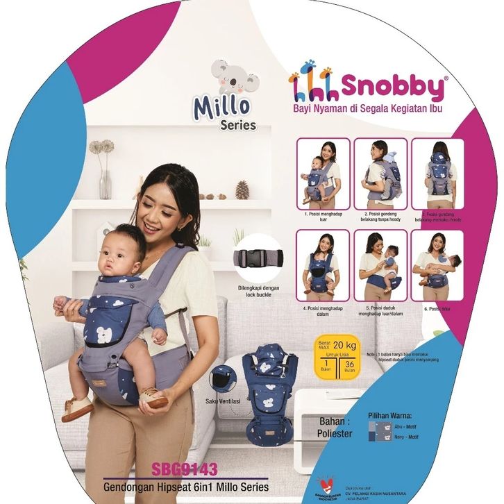 Gendongan Anak Snobby Gendongan Bayi Hipseat 6 Posisi MILLO Series - SBG9143 / Snobby Gendongan Bayi Samping Sling Mult