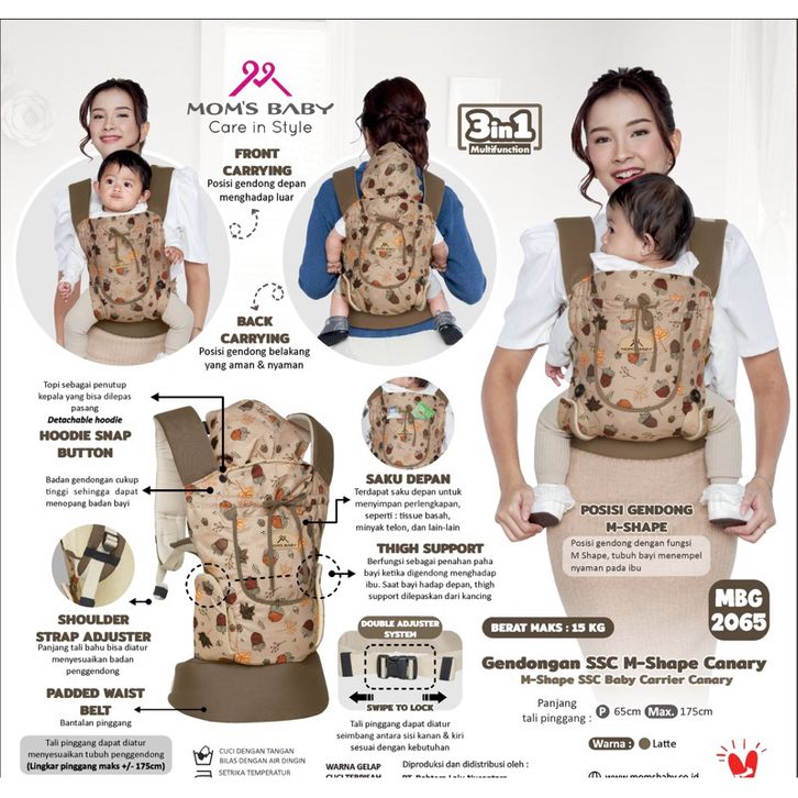 Gendongan Anak MOMS BABY | BABY JOY GENDONGAN BAYI SSC M-SHAPE 3in1 Canary |Woody | Miracle | Alaska Series, Gendonga