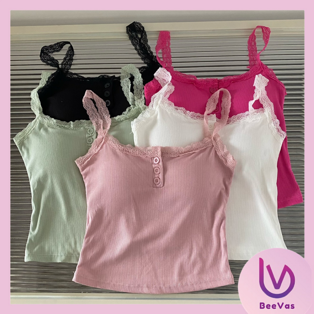 BV.ID BR1934 Tanktop Bra Cup Bh Singlet Wanita Atasan Sexy Motif Kancing Renda Tanpa Lengan