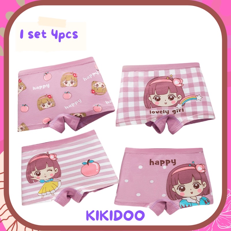 Kikidoo 4pcs Celana Dalam Boxer Anak Perempuan Katun Premium Import 01