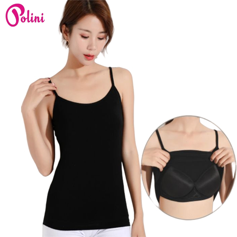 POLINI Tanktop Bra Cup Busa Tanpa Kawat Tank top Kamisol Atasan Wanita 8899