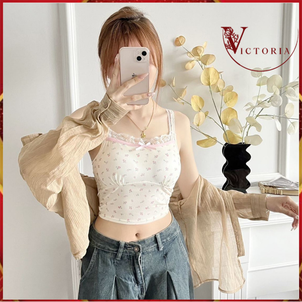 Victoria Tanktop Bra Wanita Pita Motif Renda Tanktop Croptop Pads Wanita Bahan Adem Premium 1211