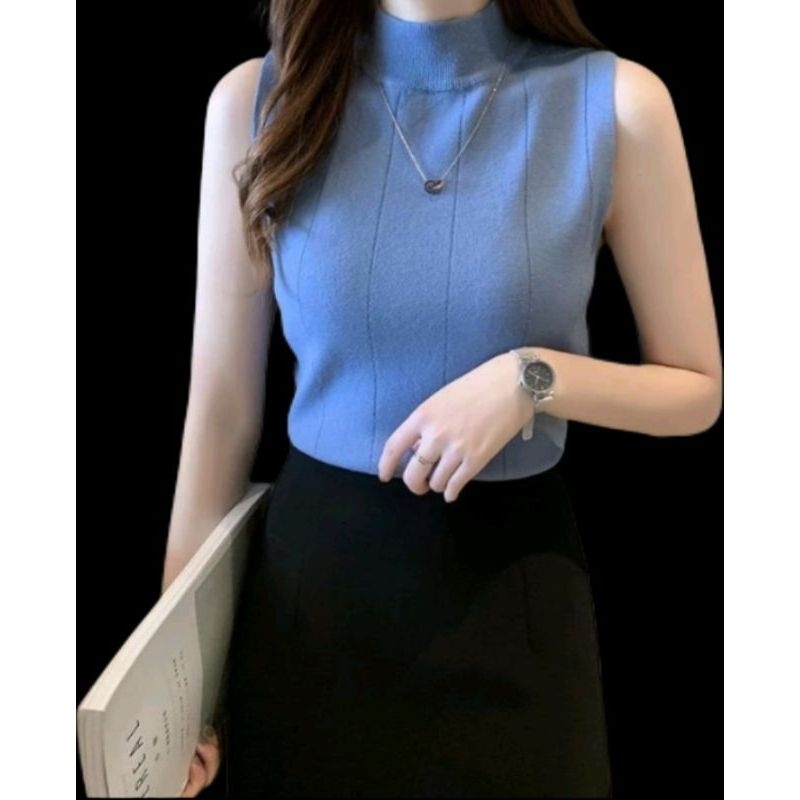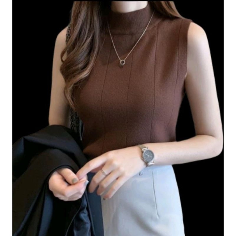 TURTLENECK WANITA/TANKTOP RAJUT KOREAN/ATASAN WANITA TANKTOP GARIS