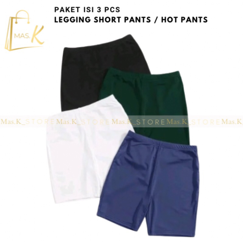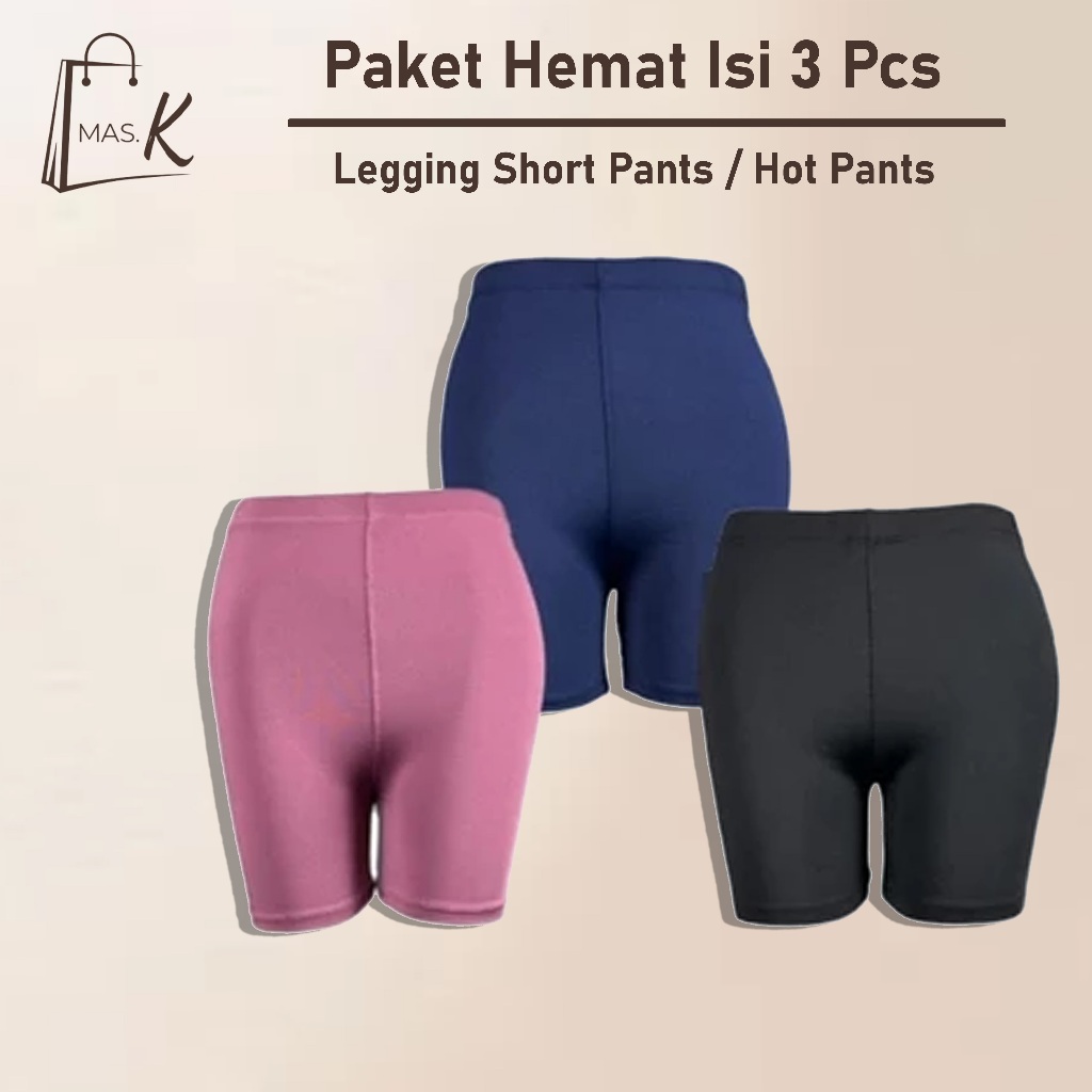 Paket Isi 3 pcs Legging Hotpants / Legging Pendek Wanita / Shortpants Wanita Bahan Spandek / Celana Pendek Ketat Wanita