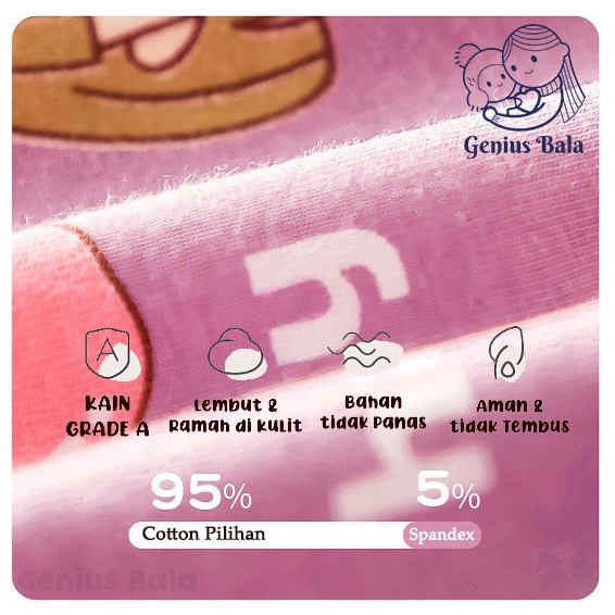 Genius Bala (2-10 Tahun)Katun murni Celana Dalam Anak Perempuan Boxer Versi Fashion Anak CD Boxer Anak Perempuan
