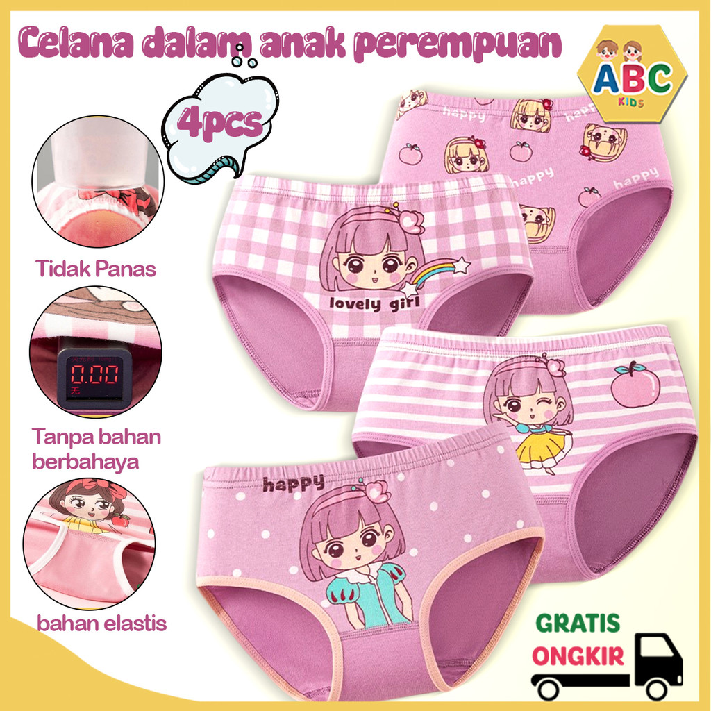 ABC KIDS Celana dalam Anak Perempuan isi 4PCS Katun murni Celana Dalam Anak 10kg-37kg Segitiga