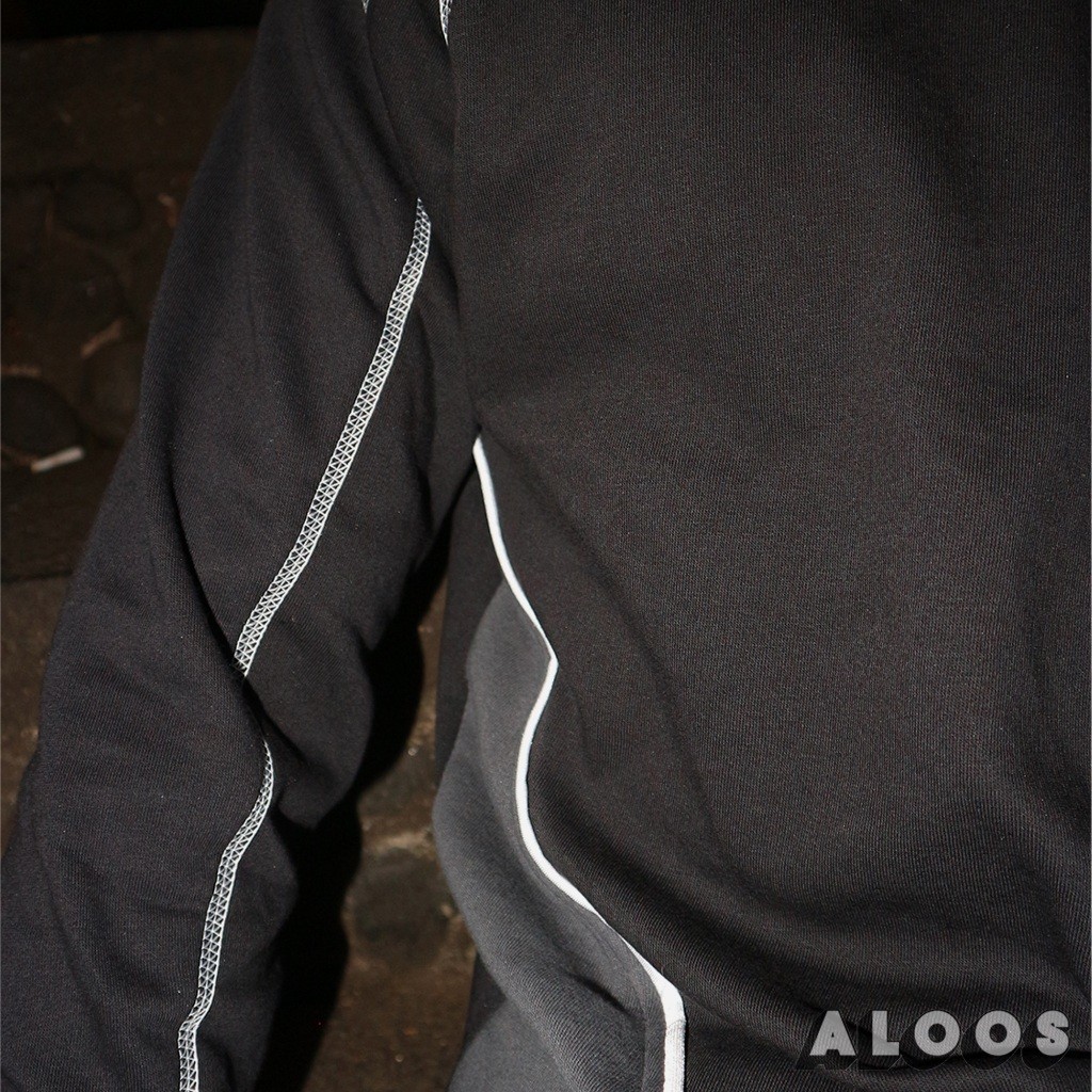 Aloos Sweatshirt - Black Charcoal Edition | Crewneck Kombinasi Lining Overdeck | Bordir / Embroidery