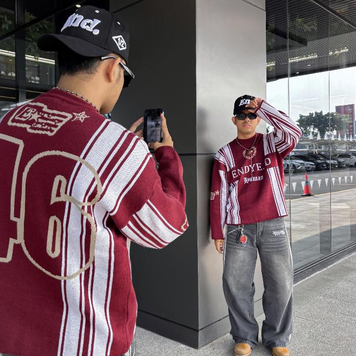 Endye.Id - Knitwear BOXY Buvy Maroon Football Knit Switer Unisex /Sweater Rajut Pria & Wanita