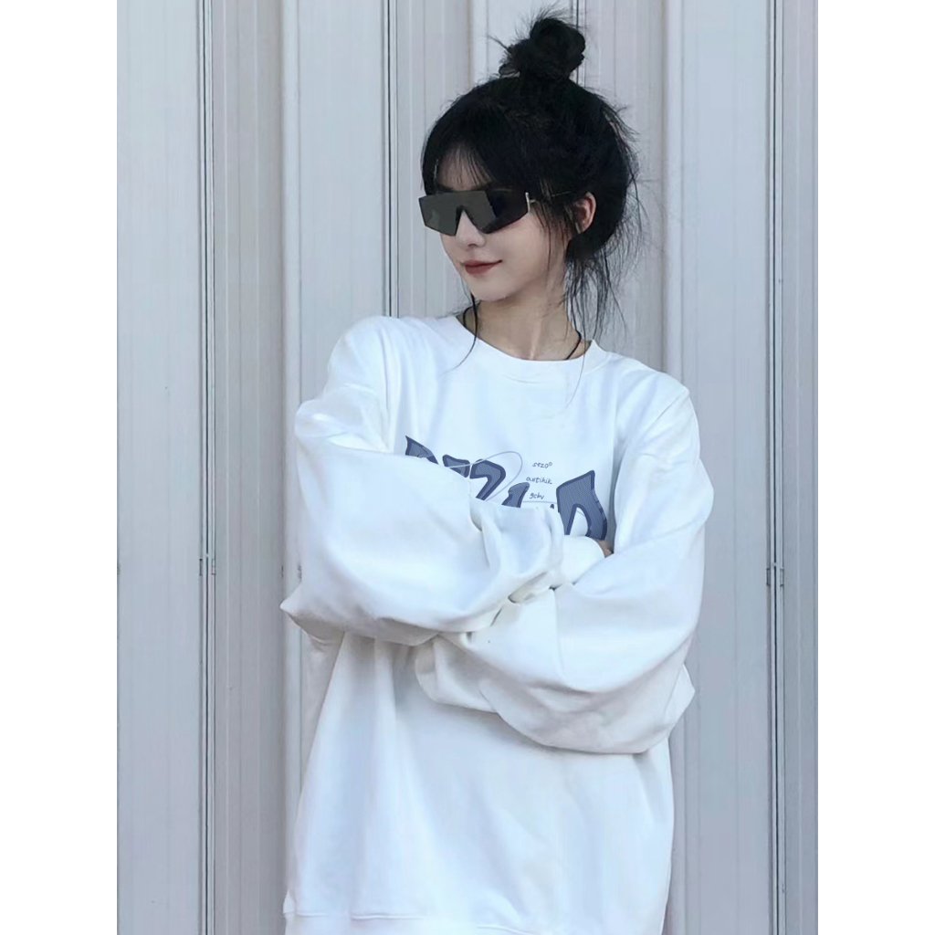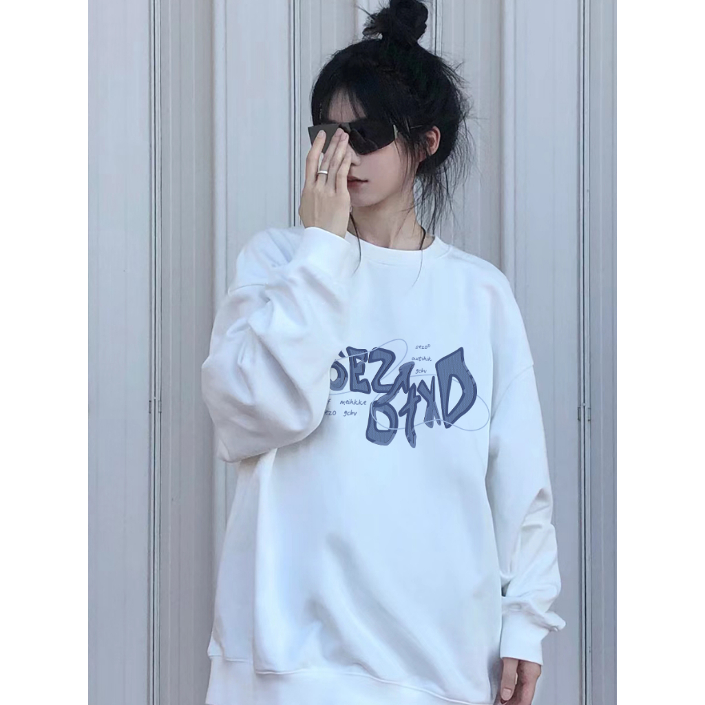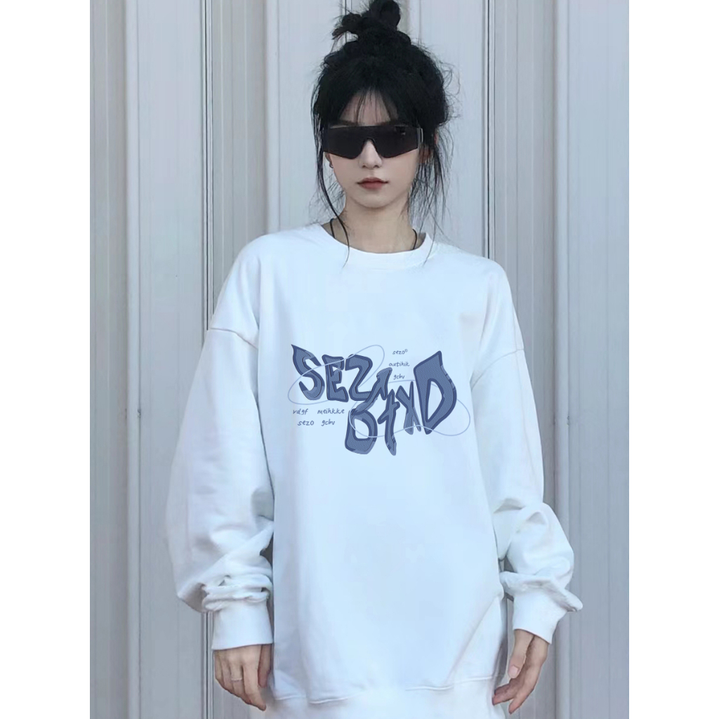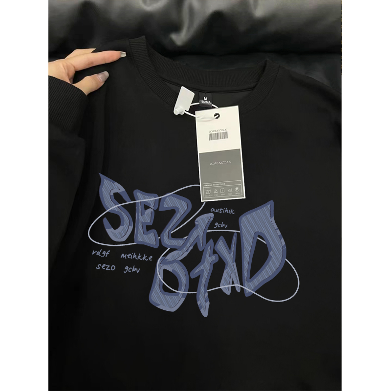 Fastfash Crewneck Sweater abstract twisted letters Lengan Panjang Oversize Switer Street Style Unisex