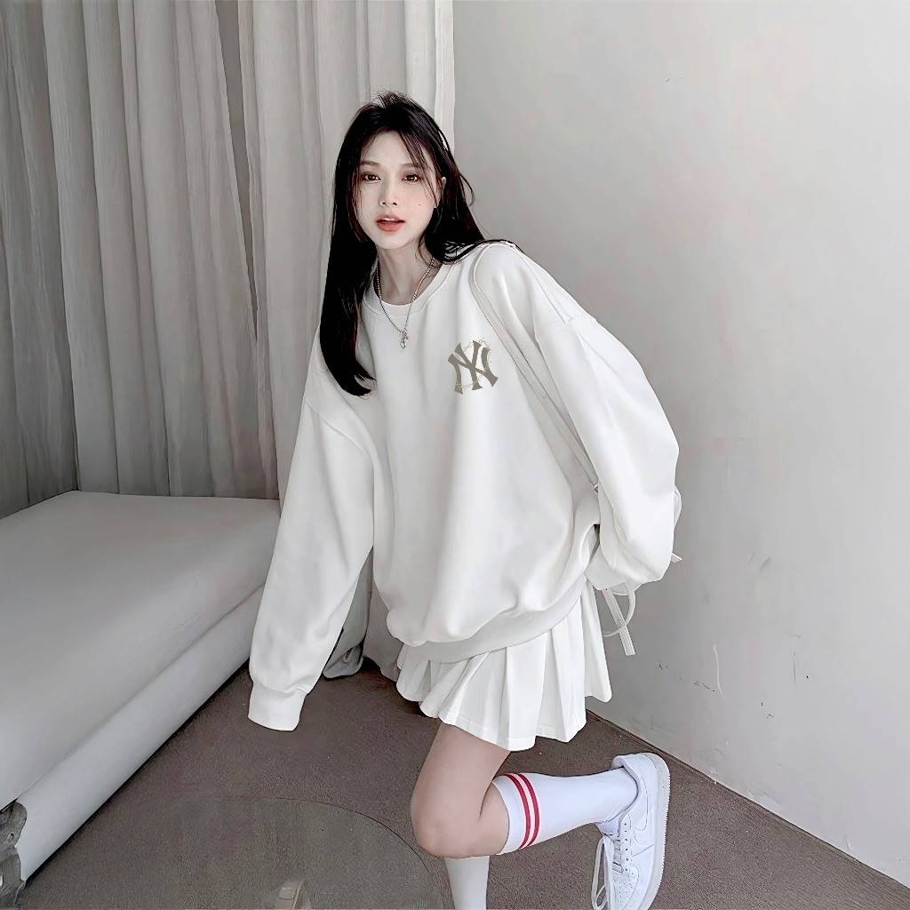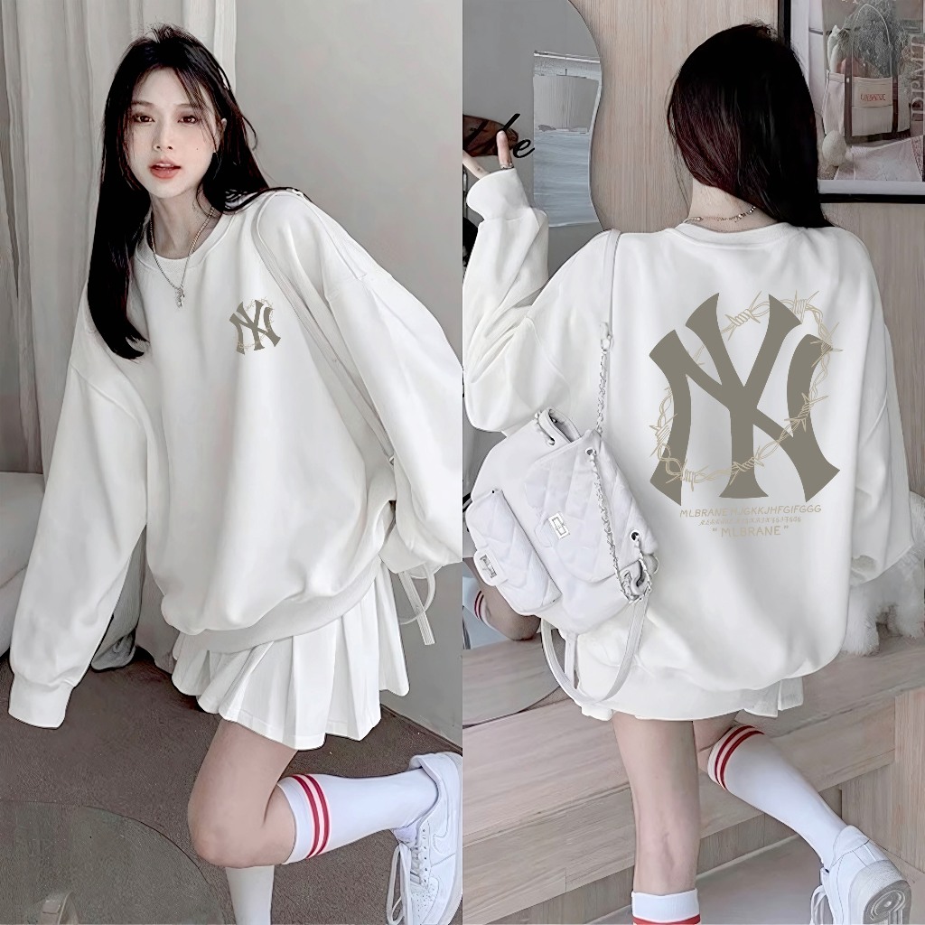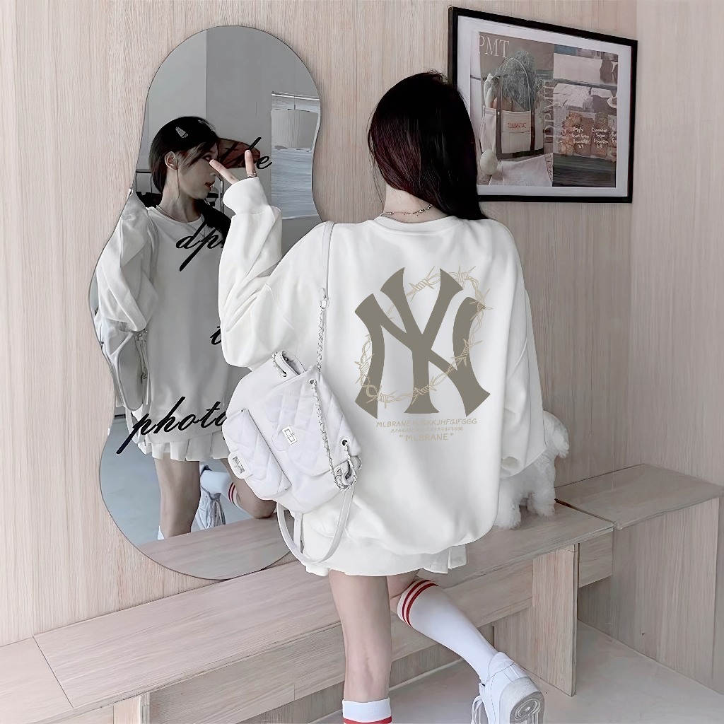 SS - Sweater Oversize Wanita & Pria NY Fashion Letters Lengan panjang Model MLBrane Baju Remaja Korean Style Loose NFL Sweatshirt Jumbo