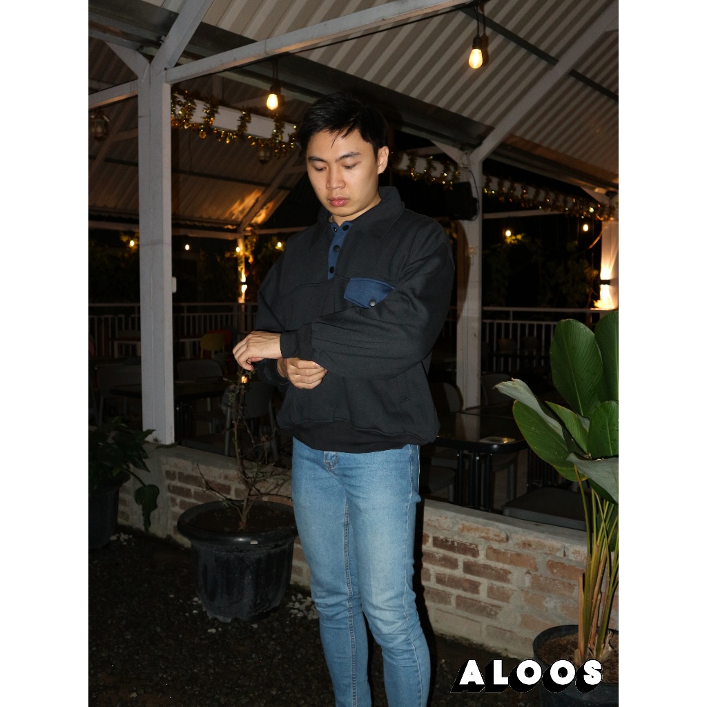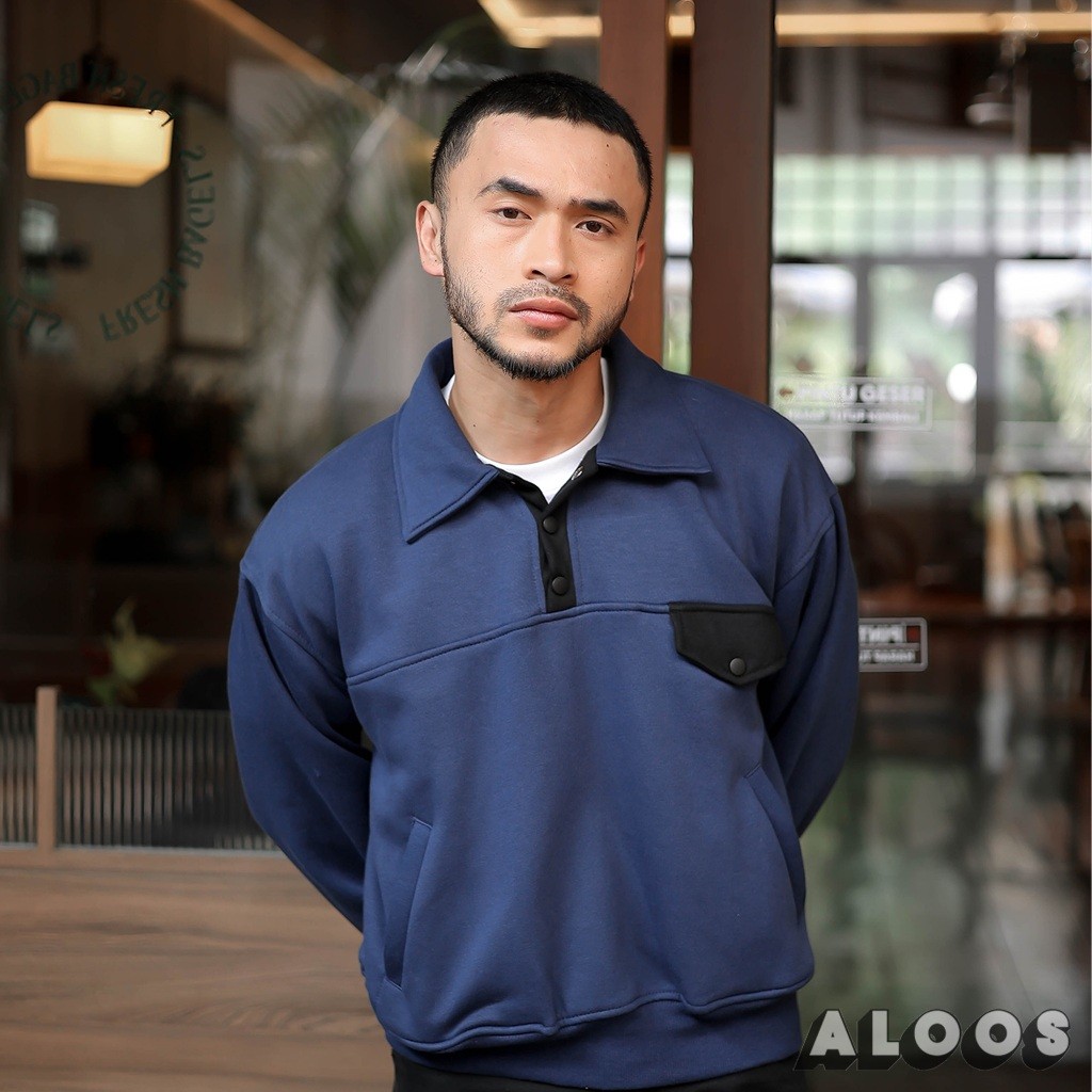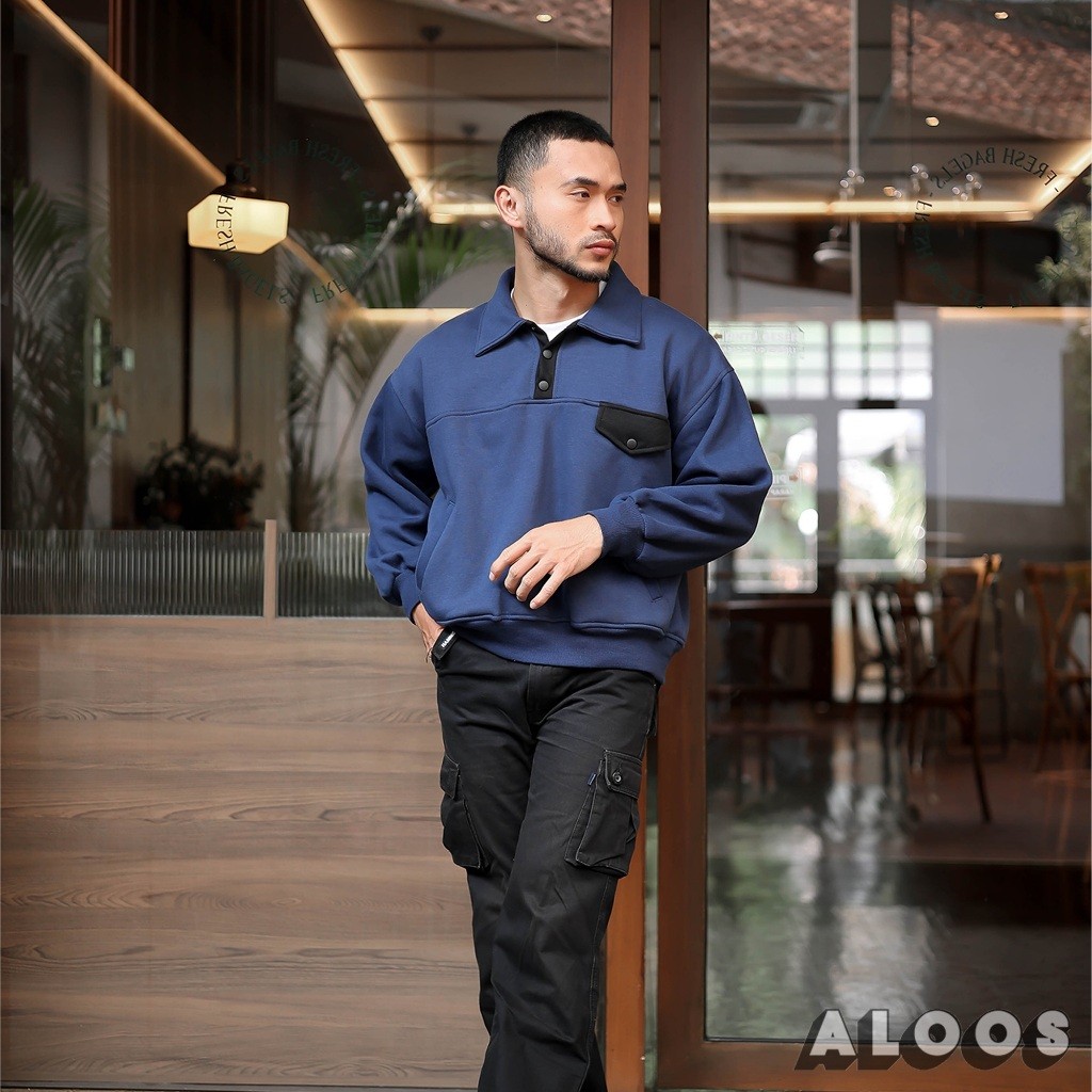 Aloos - Sweater Crewneck Rugby Sweatshirt | Sweater Premium Kasual Pria Cotton Fleece