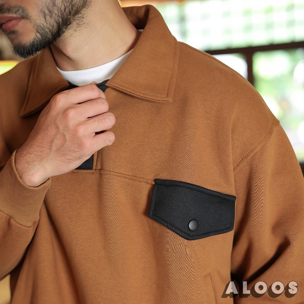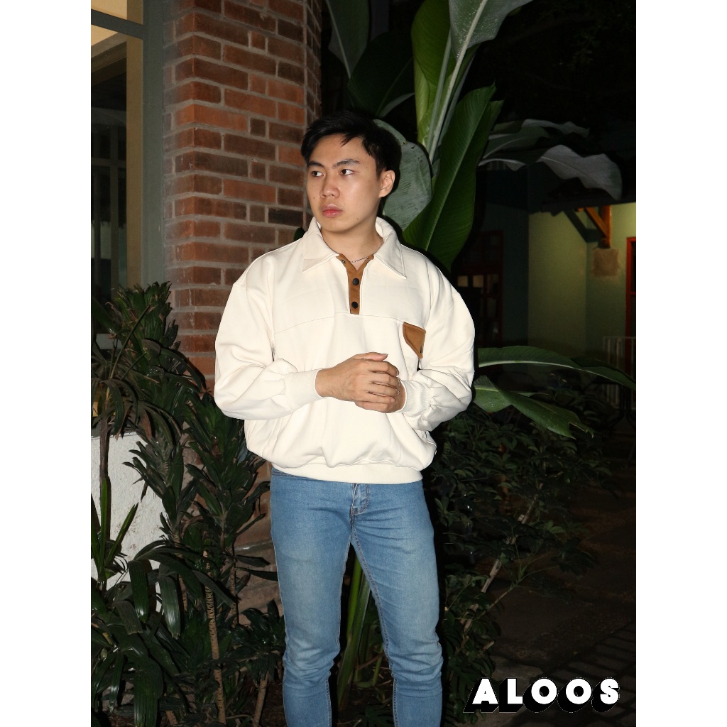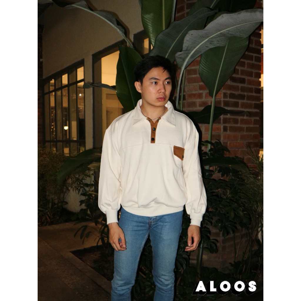 Aloos - Sweater Crewneck Rugby Sweatshirt | Sweater Premium Kasual Pria Cotton Fleece