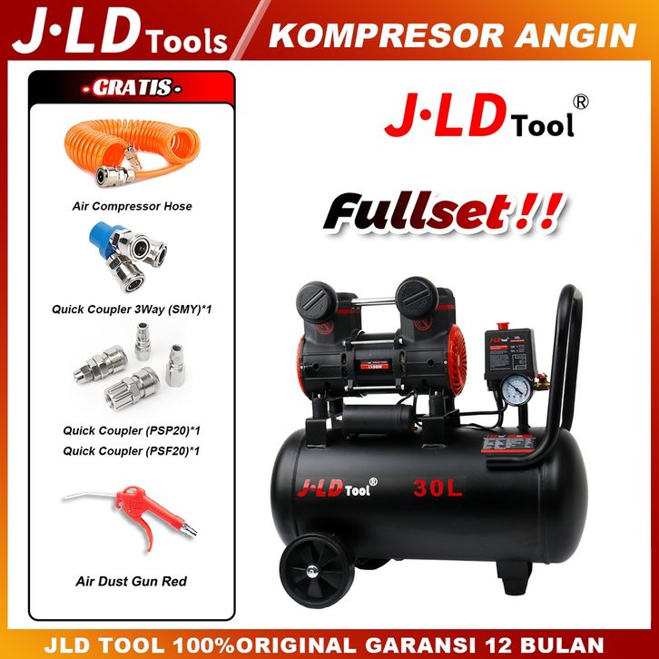 TERLARIS JLD Kompresor Angin 30L Oilless Listrik 1100W Alat Tekanan Udara 220V Mesin Pompa Angin Kompresor Pompa Angin B