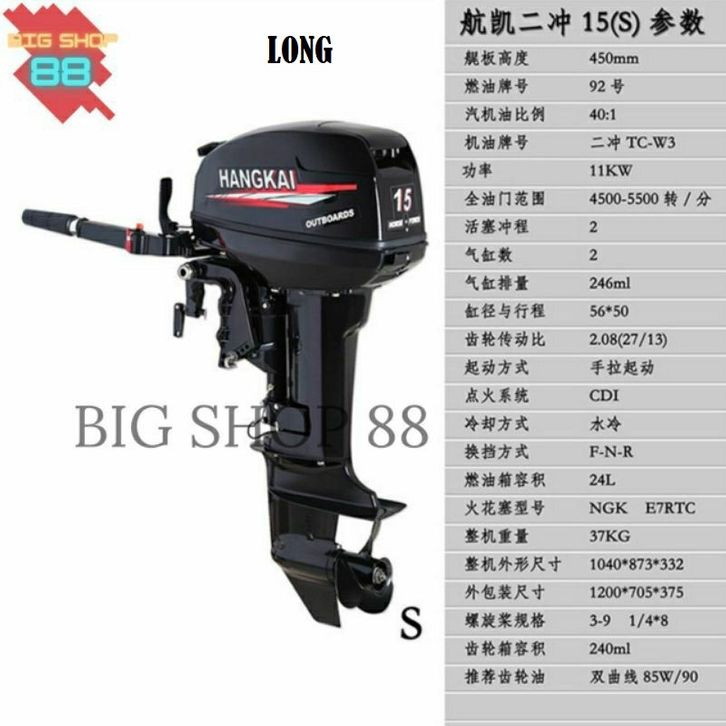 TERLARIS Mesin Tempel Perahu Outboard Hangkai 15PK 15HP 2 TAK STROKE Long Shaft Short Shaft