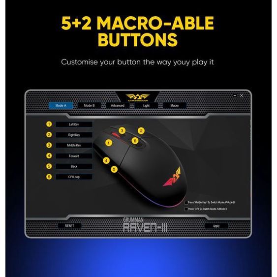 Armaggeddon RGB Gaming Mouse Raven III Silent [6400cpi ] [Gratis Mousemat] [2 Tahun Garansi Resmi]