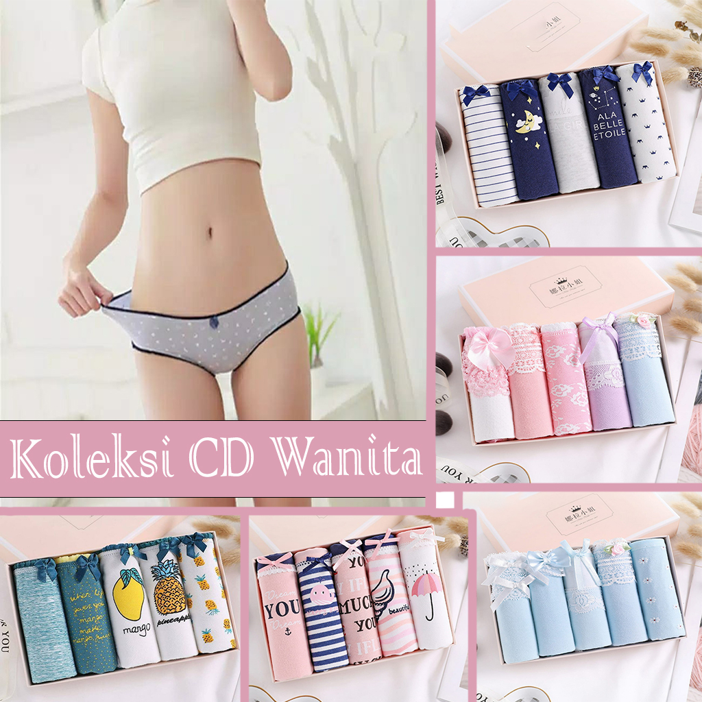 Celana Dalam Wanita Dewasa / Remaja bahan Katun Dalam Box Isi 5 Model Lucu Karakter Korea