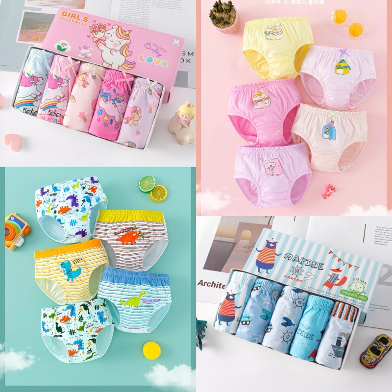 2-10Tahun Set isi 5 celana dalam anak perempuan lakilaki katun murni