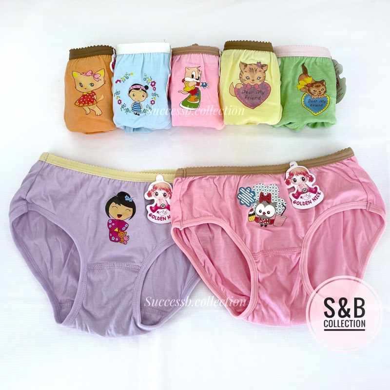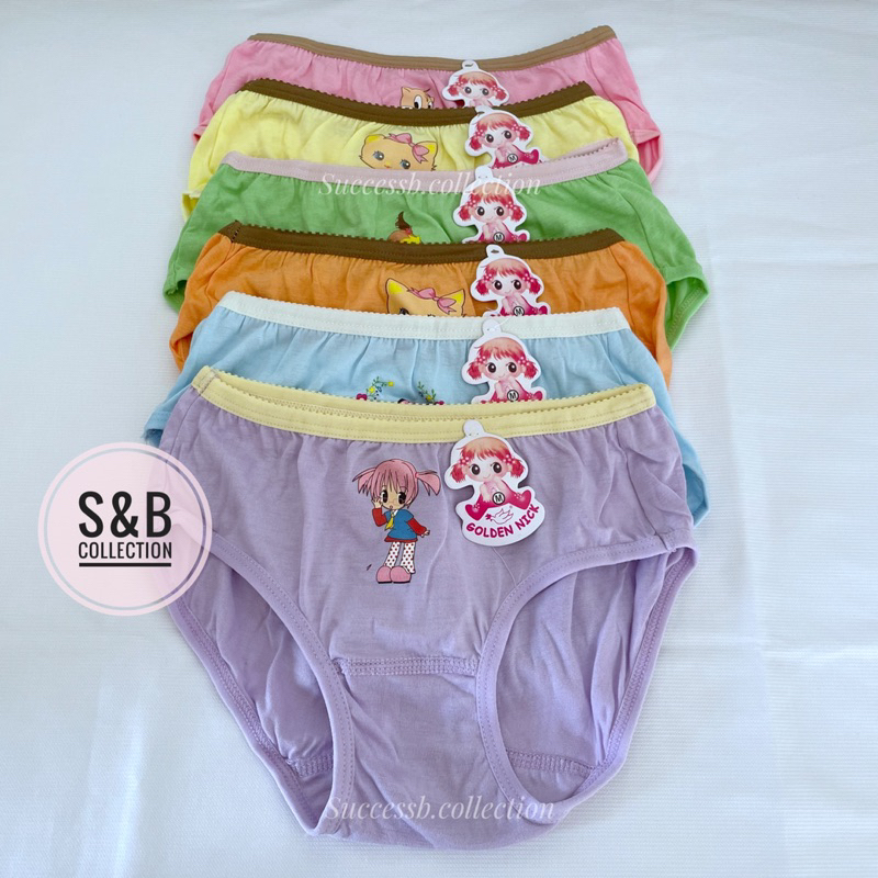 (6/12 Pcs) CD Celana Dalam Anak Perempuan goIden Nick 061, Bahan Katun Lembut Premium, Warna Soft Cantik, Motif Gambar Lucu, Label SNI