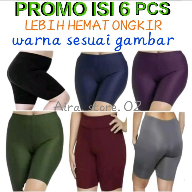 promo toko 1paket isi 6pcs short/strit legging paha standar&jumbo spandek licin