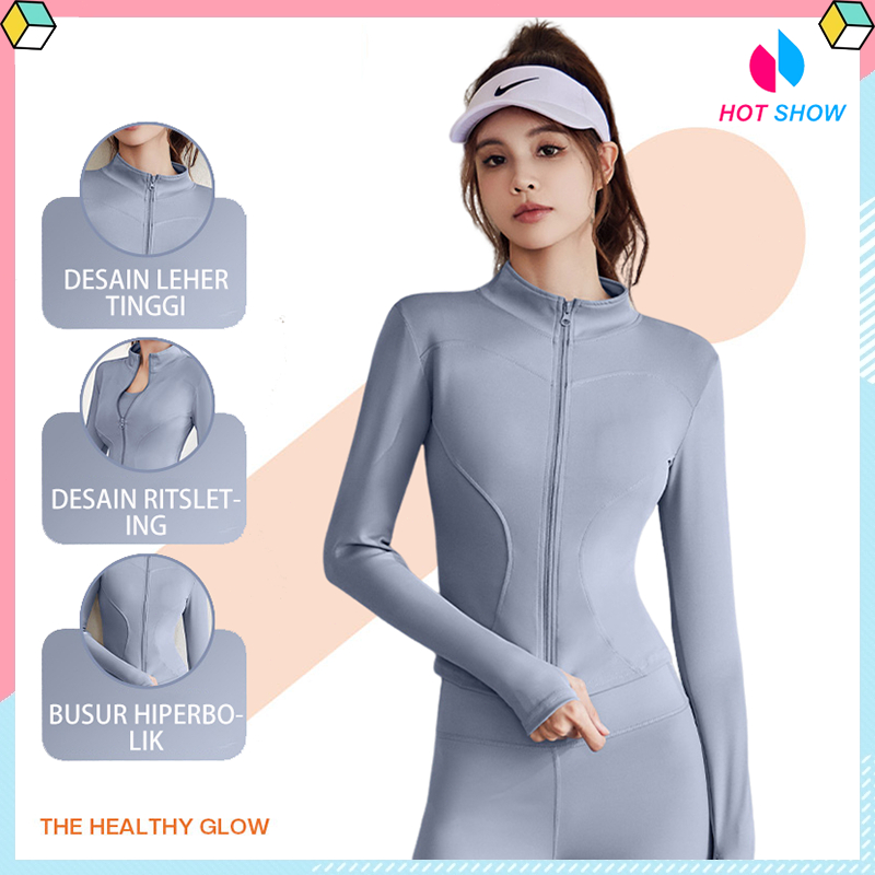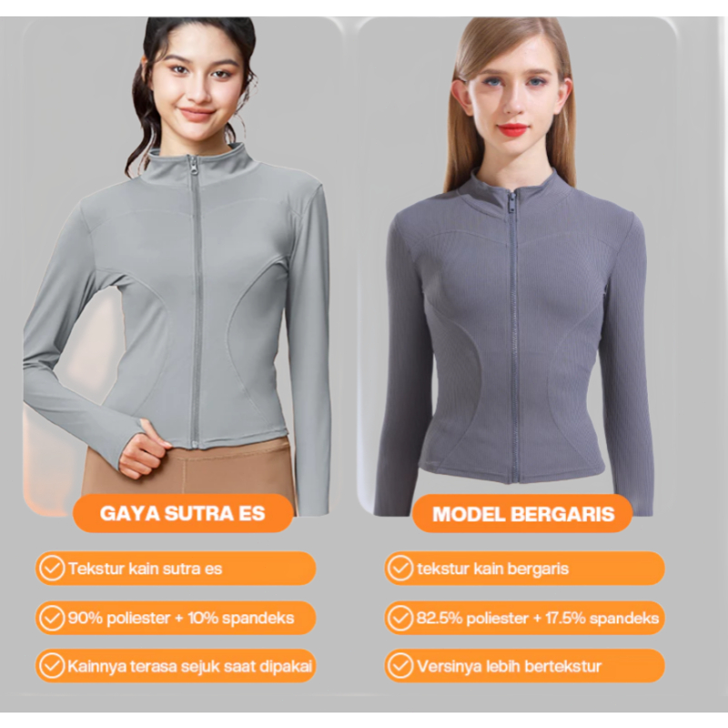 【Ready】Jaket Olahraga Wanita Lengan Panjang baju olahraga wanita baju gym wanita Jaket Anti UV UPF50+ Untuk Yoga/Fitness Sport