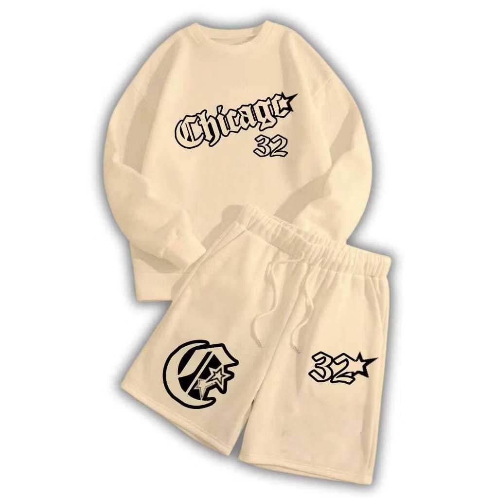 STREES One Set Crewneck & Shortpant CHICAGO Pria & Wanita Setelan Berbahan Kain Fleece Lembut Adem Size M-XL