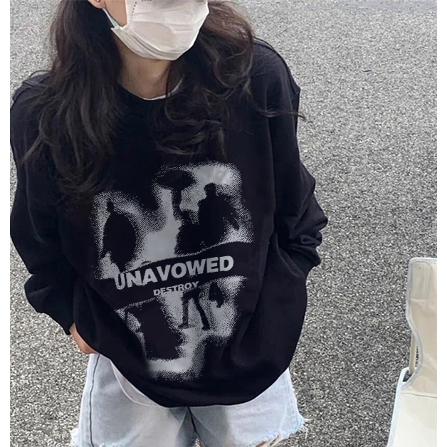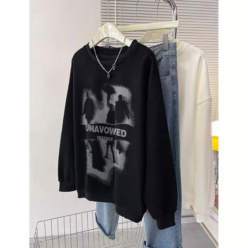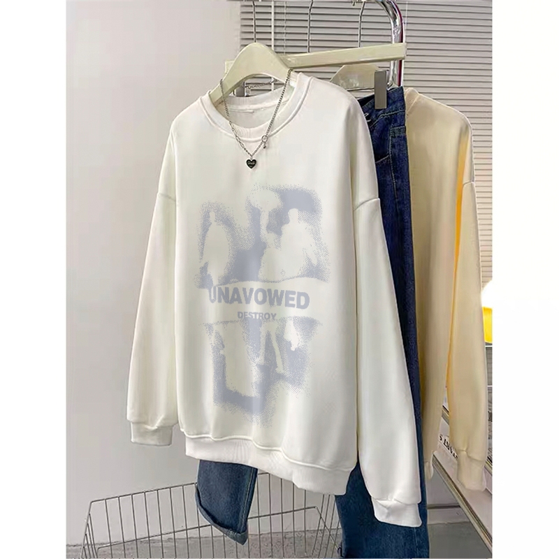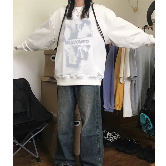 Forteid Sweater Lengan Panjang Oversized Street Style Korean Style/Switer Wanita Oversize/Pencetakan tanda air Korea/Korean Style Sweater Oversize Crewneck Wanita Crewneck Cewek Aesthetic Sweater