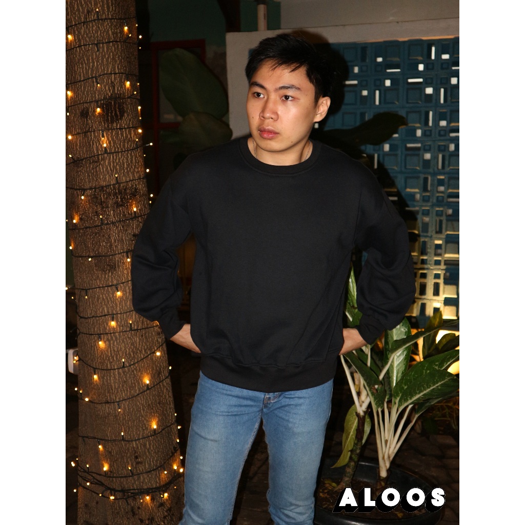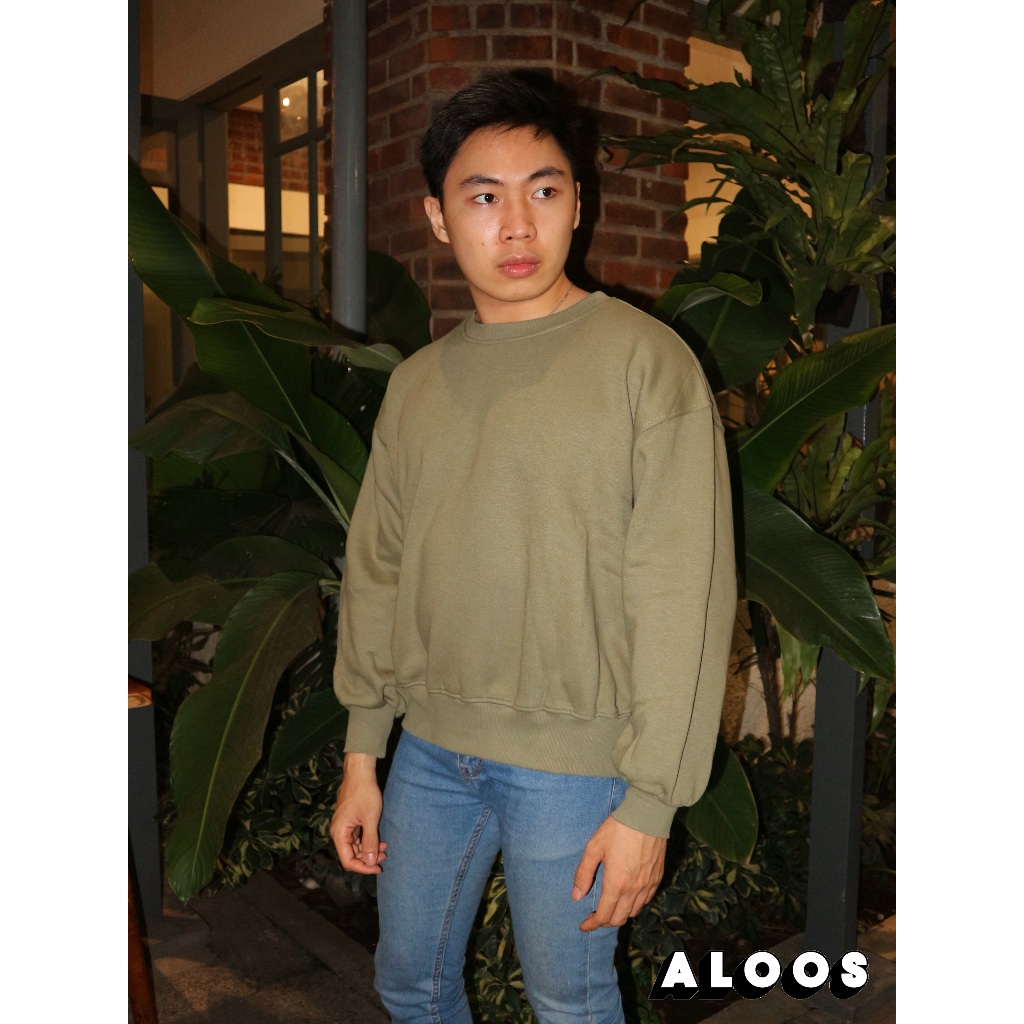 Aloos Sweater Crewneck Sweatshirt Boxy Fit - Sweater Polos Pria | Cotton Fleece Premium Tebal