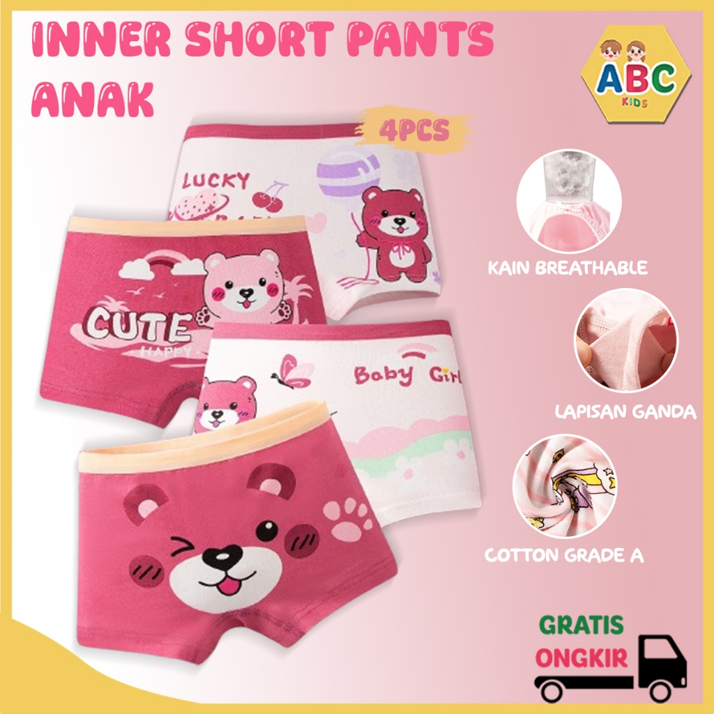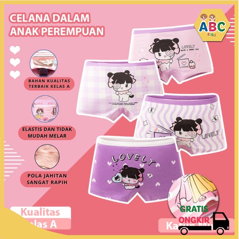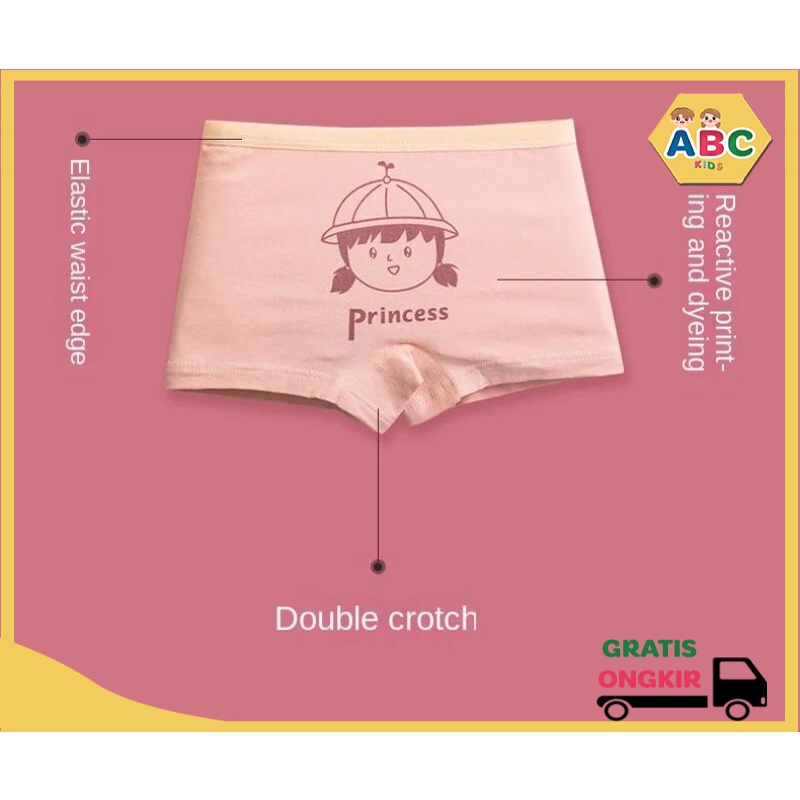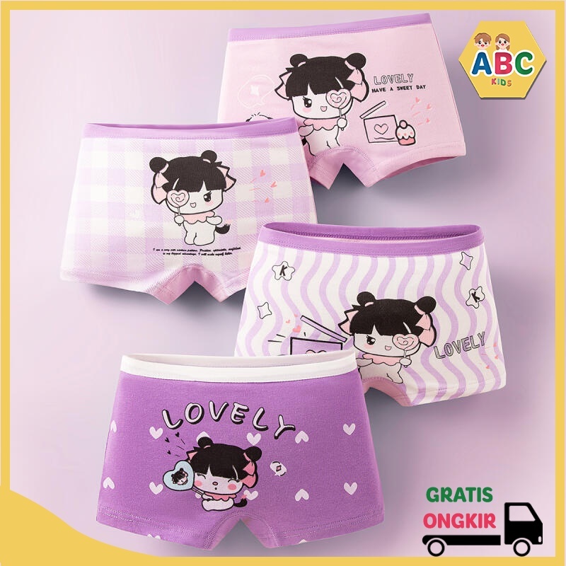 ABC KIDS 1 set isi 4 pcs Celana boxer anak perempuan Celana Dalam Katun Murni Perempuan 10kg-37kg