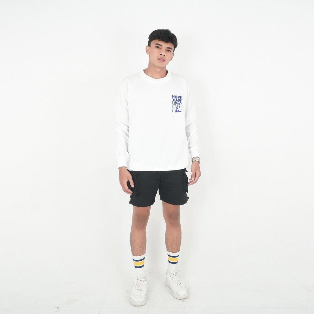 Crewneck Hope White Unisex Pria Wanita Sweater Cowok Cewek Bahan Fleece Nyaman Dan Keren Bandung Tangan Panjang Sablon DTF Premium