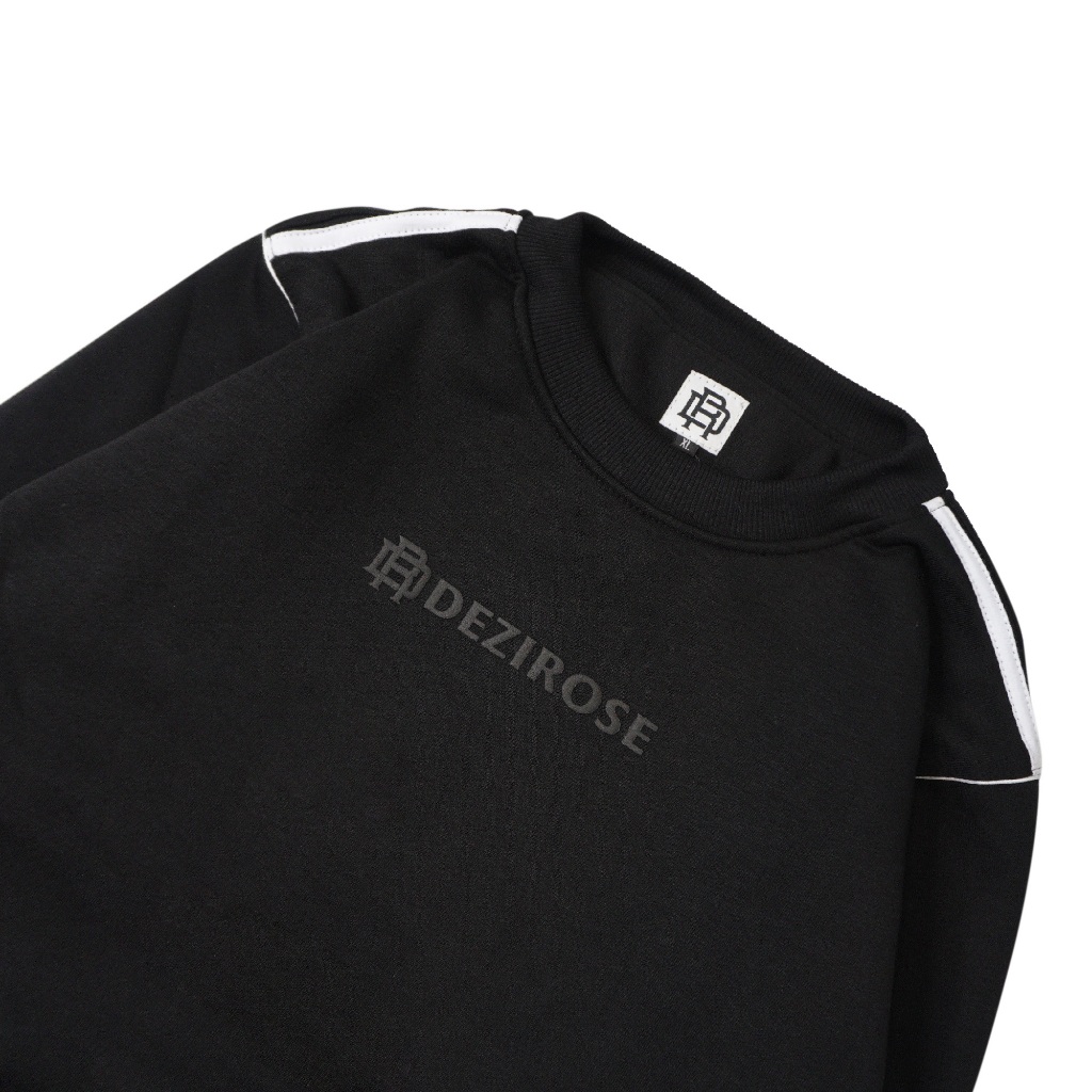 Dezirose Sweater Crewneck Slight Strip Font Logo Pria Wanita Distro Fleece Tebal Premium - Black