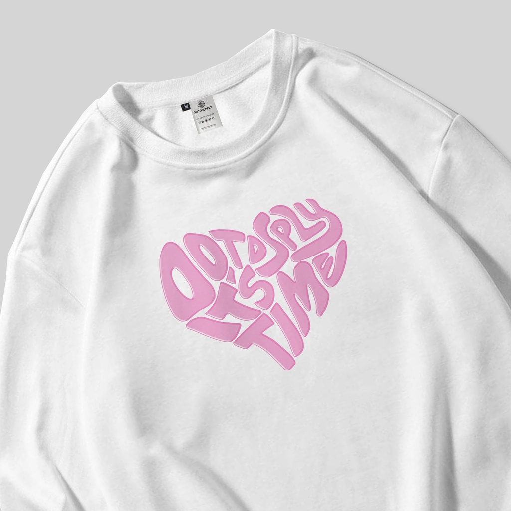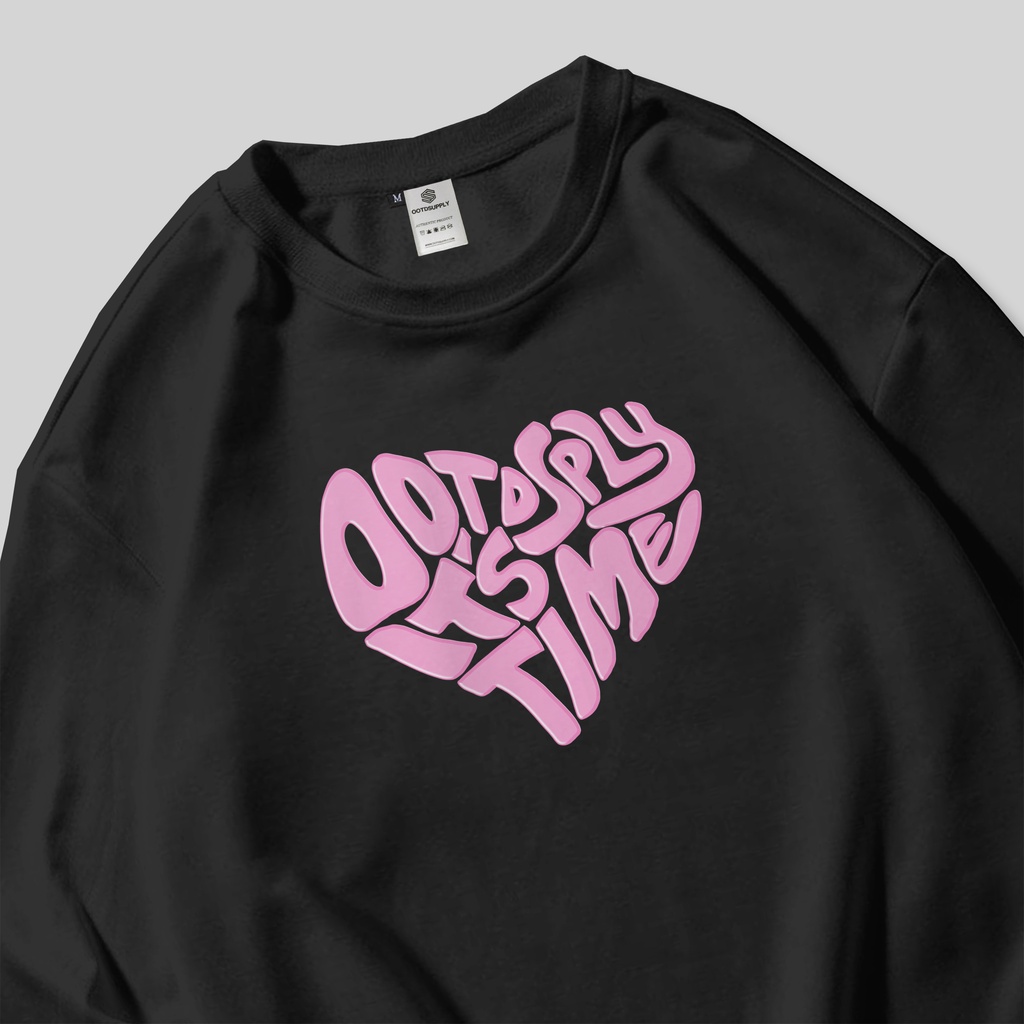 OOTDSUPPLY Crewneck Pink Heart Black & White | Sweater Pria & Wanita CN060
