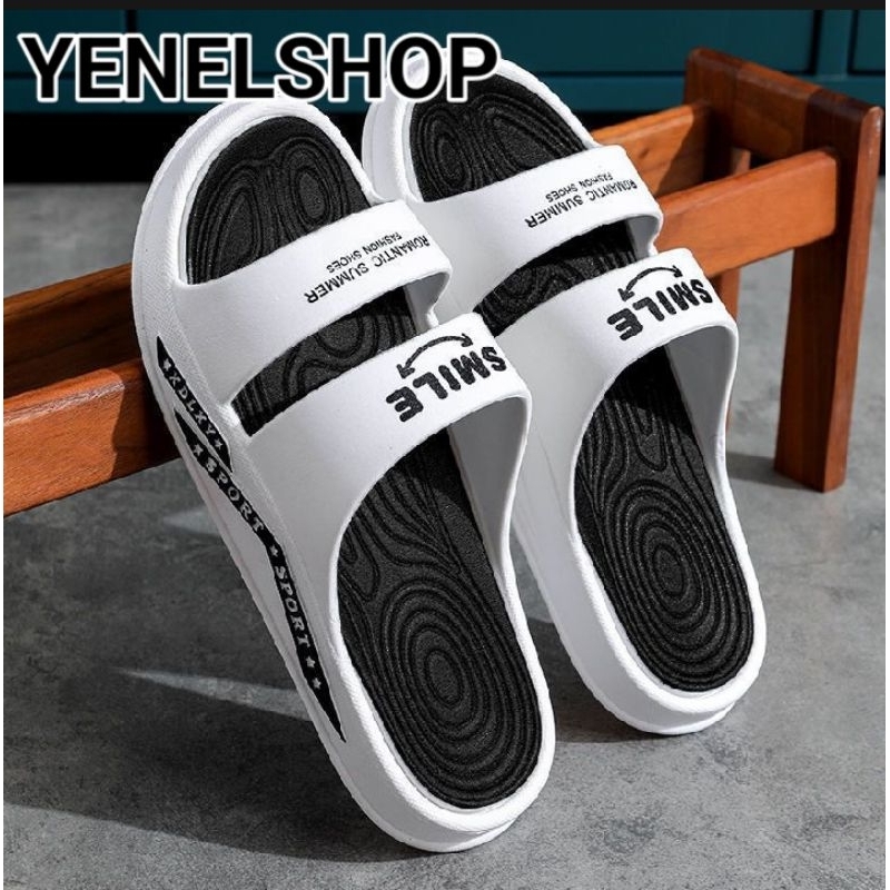 YENELSHOP/Sendal slop Pria warna white /putih wanita premium terbaru Bahan tidak mudah Licin Sendal Smile Pria premium terbaru Yenelshop sendal terbaru