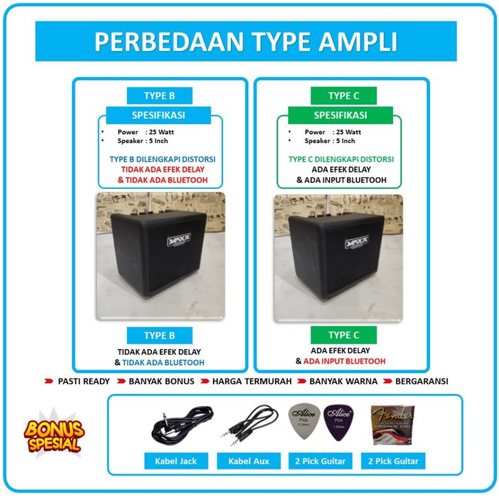 RK - Ampli Gitar & Bass 5 Inch Original ada bluetooth & efek distorsi & efek delay Banyak Bonus Kabel Jack & Senar Gita