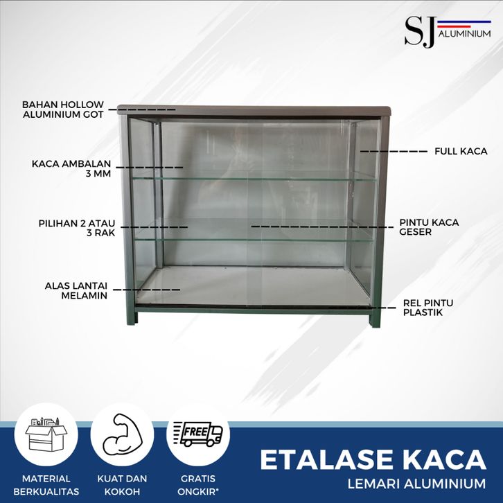 Terlaris Etalase Kaca Aluminium / Etalase Display / Lemari Kaca / Rak Kaca / Rak Dapur Serba a - 60 x 25 CM / 3 Rak Ker