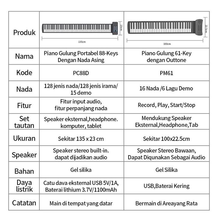 Benston Music-Piano Elektronik/ 61-Key Piano Gulung Elektronik/Piano Elektronik Lipat Portabel/Piano Latihan Pemula