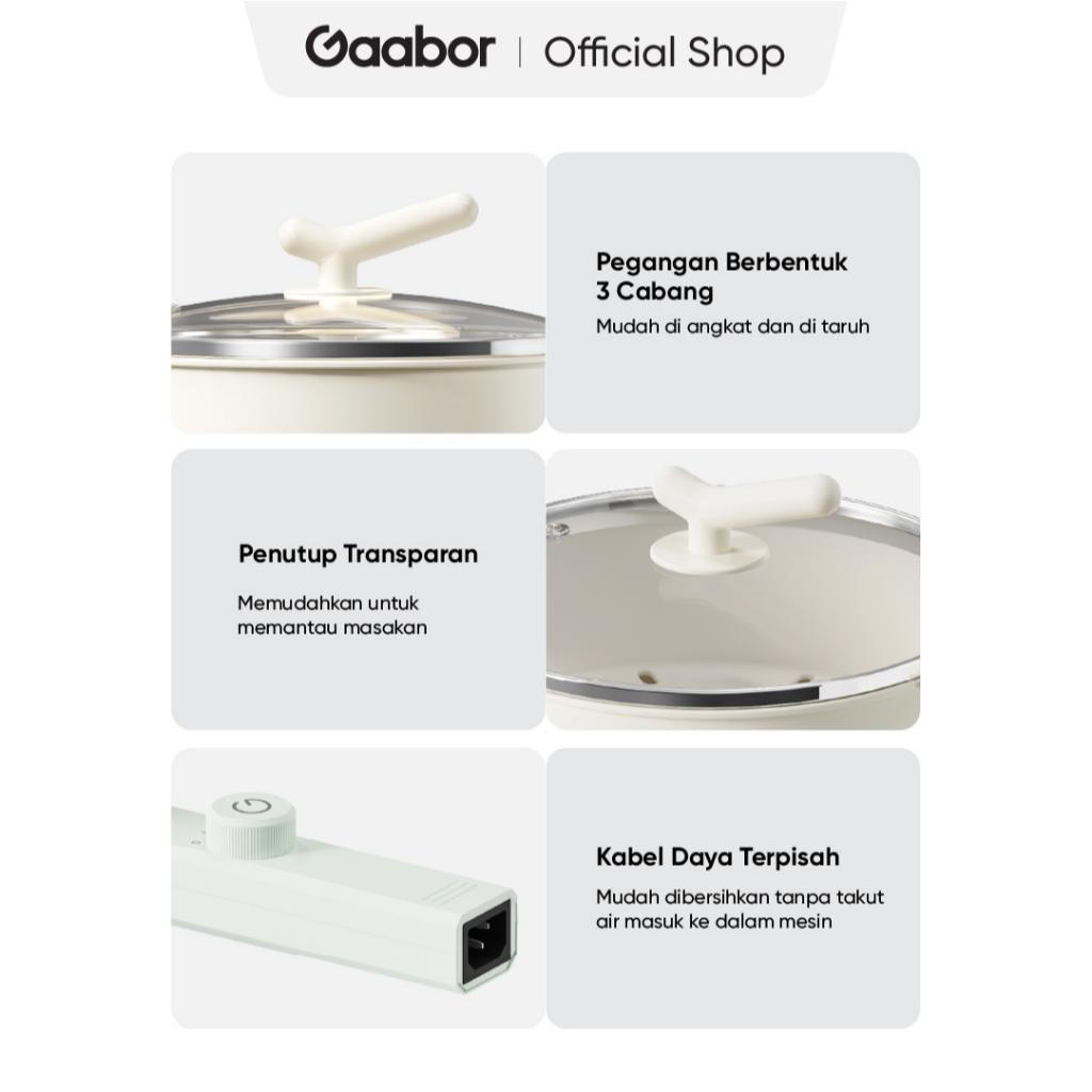 PANCI LISTRIK GAABOR EC 20M01A KAPASITAS 2 LITER 600W ELECTRIC COOKER ANTI LENGKET SERBAGUNA MULTIFUNGSI JUMBO MURAH
