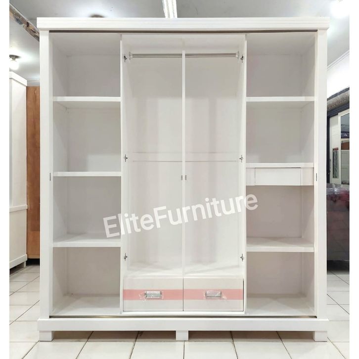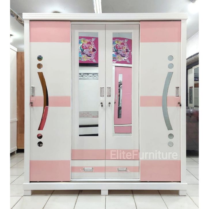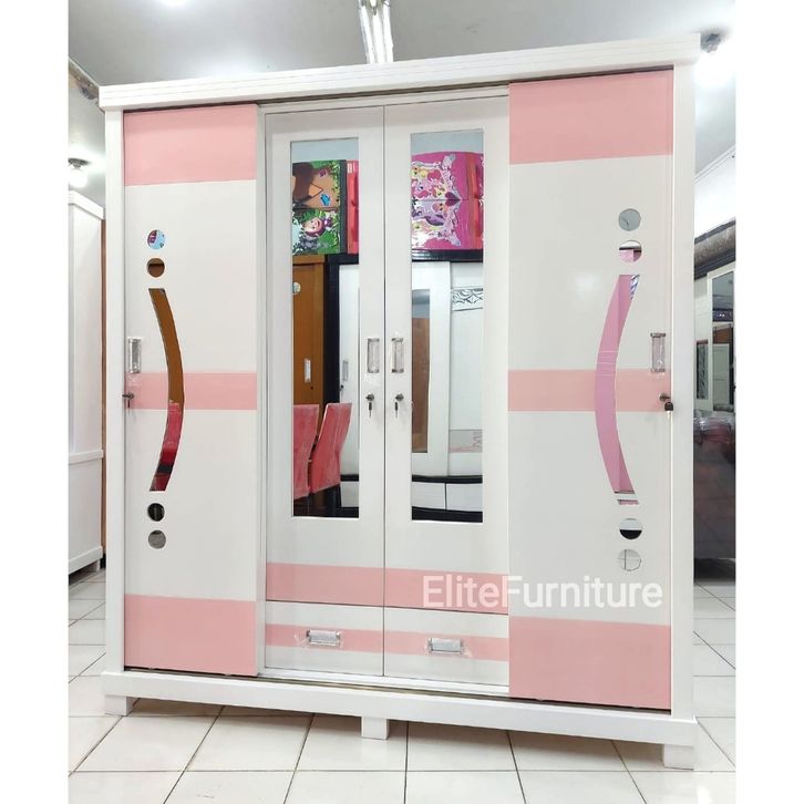 Lemari Pakaian Gamis Jumbo Ukuran180cm Warna Pink , Lemari Baju 4Pintu sliding , Lemari Pakaian 4Pintu Pintu Geser