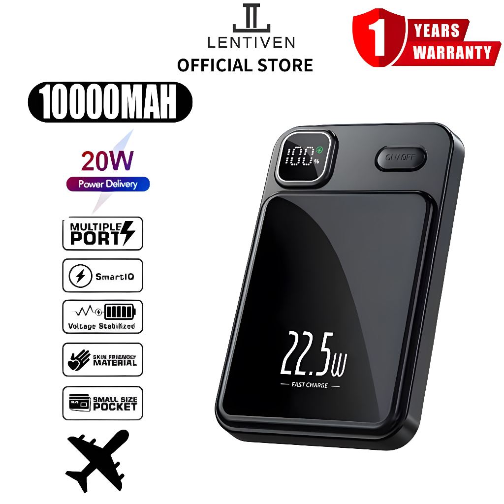 POWERBANK LENTIVEN 10000MAH FAST CHARGING Wireless Charger Mini Magnetic Magsafe 20W TYPE C